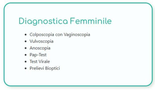 Per la diagnosi e la prevenzione di queste malattie, il Poliambulatorio offre la possibilità di effettuare esami diagnostici altamente accurati con l’uso di una moderna strumentazione, oltre ad esami effettuati con il prelievo di campioni ed invio a laboratori esterni che operano in partnership con la struttura. Esami Diagnostici in sede: