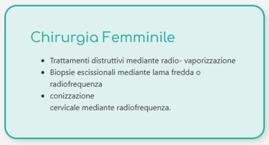 Principali interventi: Trattamenti di lesioni genitali, displasie di basso grado e displasie di alto grado